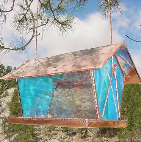 Lots of great colors with rich hues catch light beautifully for a distinctive addition to the landscape. Accommodates all types of seed mixes to attract a wide variety of birds. Complete with thick twisted copper hanger, all parts withstand elements beautifully, will never fade.