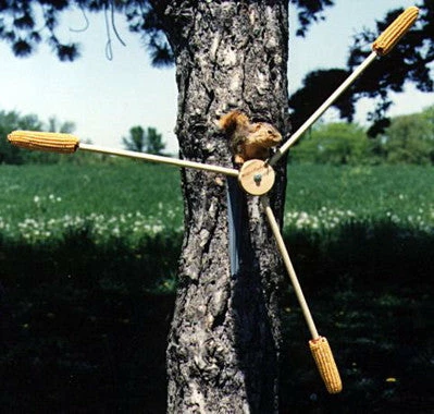 Squirrels love this feeder! Squirrel’s weight causes the feeder to rotate. It swings and spins…as the hungry acrobats grab a bite to eat. Attach an ear of corn, fruit or peanuts in mesh to this squirrel feeder and watch the fun begin. Helps to deter squirrels from bird feeders too.